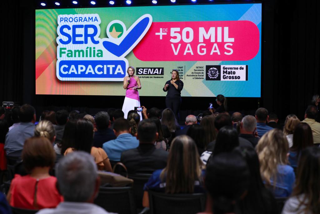 No lançamento do programa SER Família Capacita nesta segunda-feira (17.04), a primeira-dama de MT Virginia Mendes, idealizadora do projeto, destacou o impacto positivo que o investimento vai trazer à economia mato-grossense. O novo programa vai atender os 141 municípios com 75 diferentes profissões, investimento de R$ 68,7 milhões.