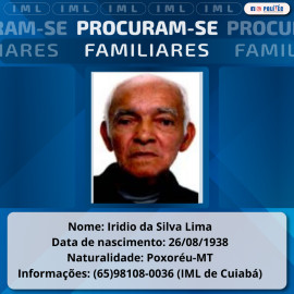 3- Irídio da Silva Lima, nasceu em 26/08/1938 em Poxoréu (Mato Grosso). É filho de Iria da Silva Lima e Lidio Antonio de Lima. Faleceu no dia 02/10/2021, tendo sido encontrado morto em sua residência no bairro Jardim Eldorado, em Cuiabá (Mato Grosso).