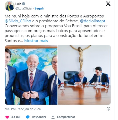 A expectativa do Executivo era lançar esse programa ainda em 2023, quando Márcio França estava à frente do Ministério de Portos e Aeroportos. À época, França previu 1,5 milhão de passagens aéreas por mês para os dois públicos, além de pensionistas.