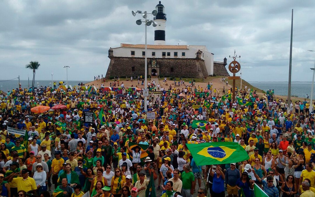 Manifestantes iniciaram uma caminhada por volta das 12h deste domingo (4), no bairro da Barra, em Salvador, para defender as investigações da Operação Lava Jato, contra a corrupção e contra o projeto de lei 280, que altera a lei de abuso de autoridade.