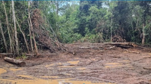 As diligências no interior da mata revelaram uma estrada vicinal dentro da área de preservação permanente, com áreas abertas por desmate característico de madeireiros clandestinos, além de trilhas de cortes de árvores nobres para comercialização.