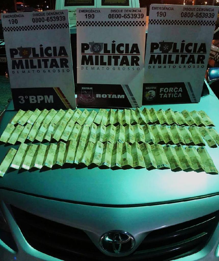 Dinheiro estava com um dos suspeitos detido – Foto por: PMMT