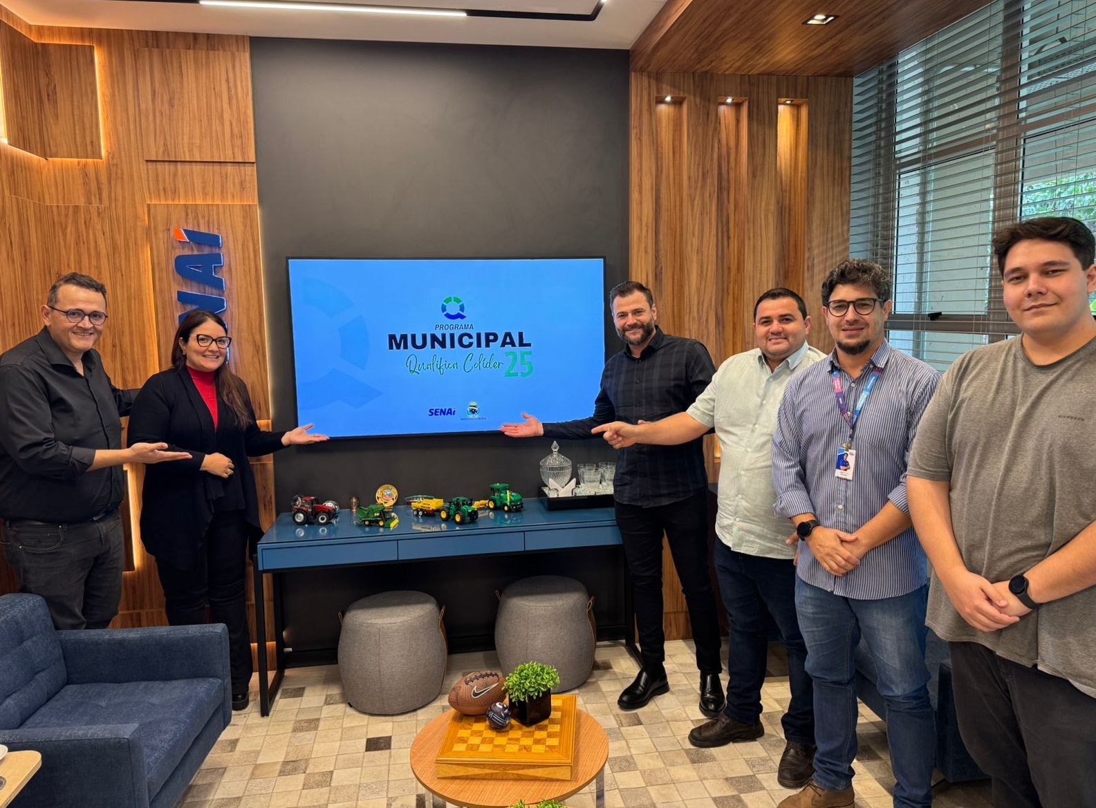 O prefeito Rodrigo Benassi participou de uma reunião estratégica com a equipe técnica do SENAI Mato Grosso, em Cuiabá, para tratar da implementação do Programa Municipal Qualifica Colíder 25, voltado à formação profissional da população colidense.