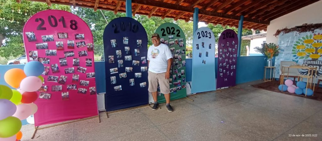 E entre café compartilhado, preces que tocaram fundo, dinâmicas animadas, bingo alegre, almoço farto, folia  e forró que tirou o chão dos mais tímidos, a família inteira foi se reencontrando — não apenas com parentes, mas consigo mesma. Chamando a atenção dos presentes os painéis feitos com muito zelo, destacando as fotos dos encontros anteriores.