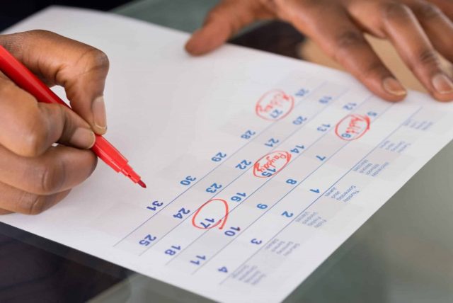 Pessoa marcando datas em uma calendário – Imagem: Andrey_Popov/Shutterstock.
