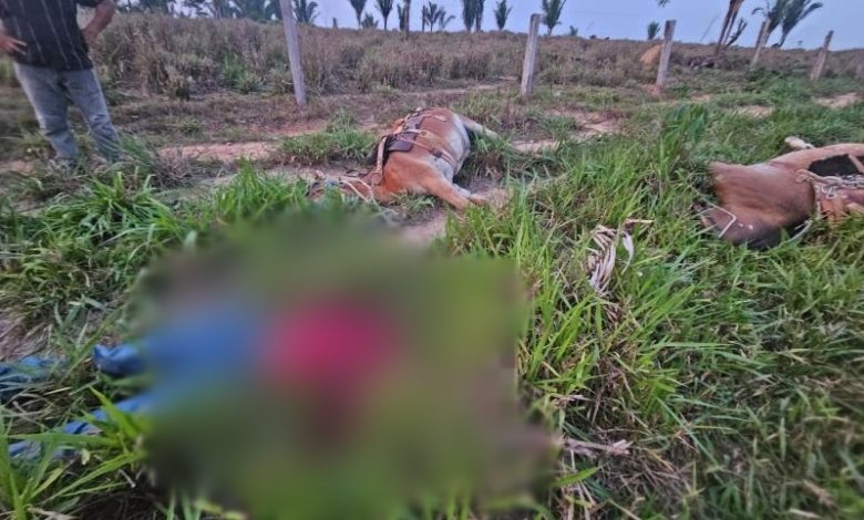 Raio mata homem, cavalo e burro em pastagem no Estado do MT
