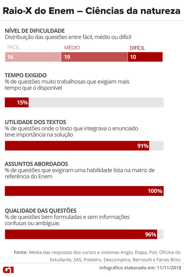 Raio-x do Enem 2018 – ciências da natureza — Foto: Roberta Jaworsky e Claudia Peixoto/G1