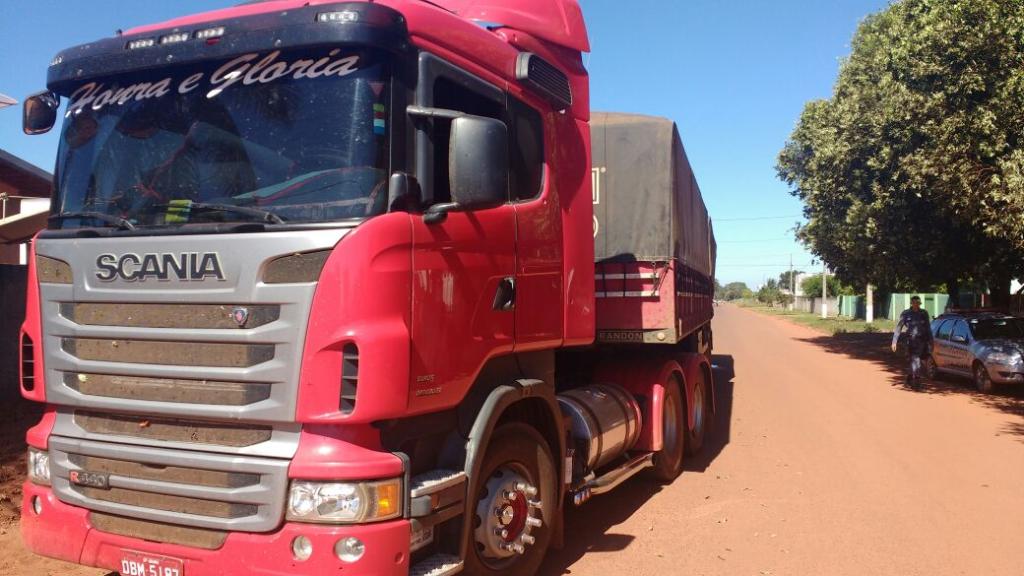 O roubo aconteceu na rodovia MT-170, na entrada de acesso ao Rio do Sangue, na região de Brasnorte. O caminhoneiro F.H.P.S., de 26 anos, trazia a carga do Estado de São Paulo. Ele foi rendido e obrigado a entregar o veÃculo aos assaltantes.