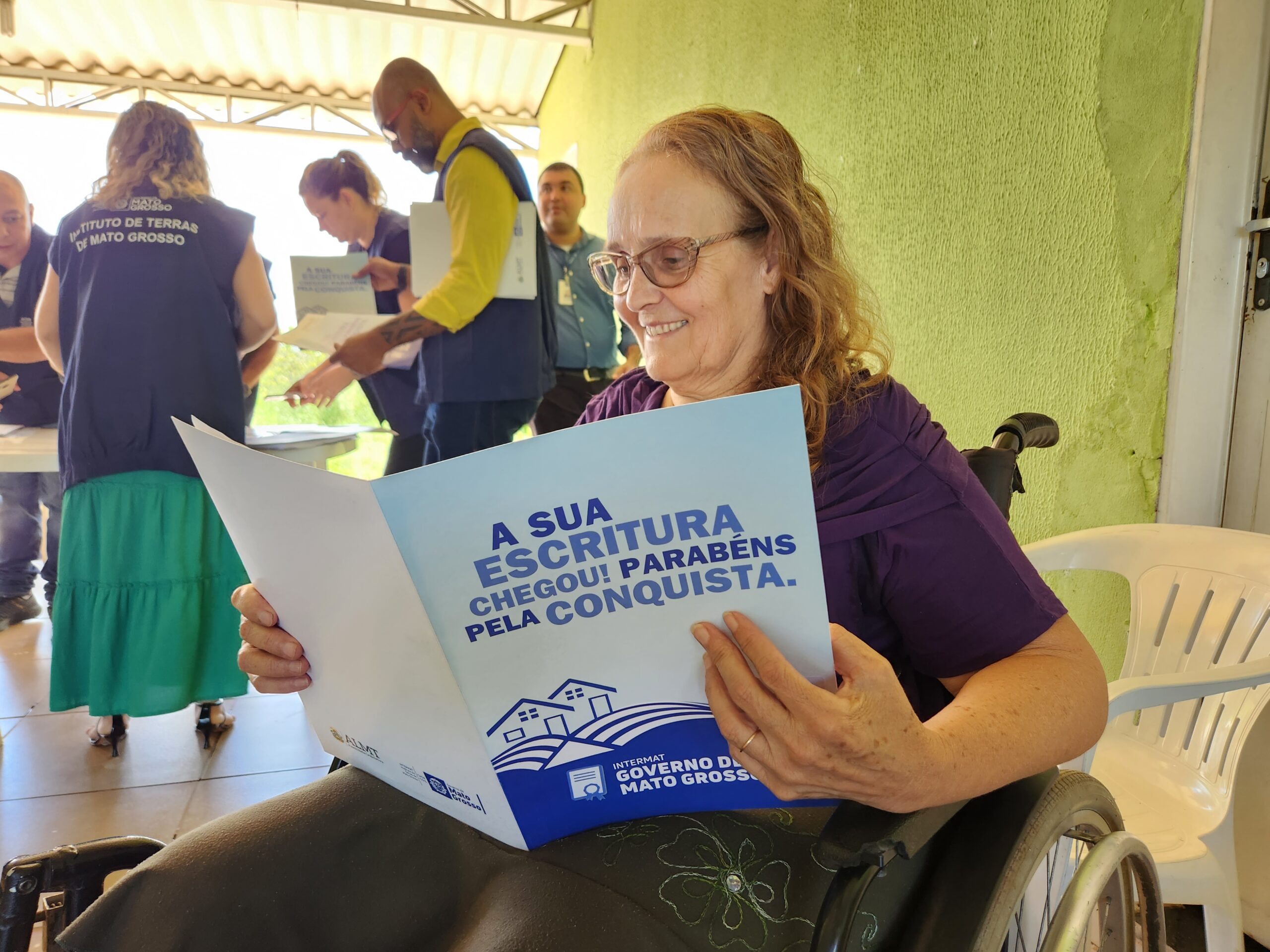 “Para nós, é a realização de um sonho e uma grande conquista. Essa entrega nos faz acreditar em nossos governantes. É a prova de que está olhando para todas as comunidades. Traz uma imensa alegria receber esse registro”, disse Aparecida Cansado, de 63 anos, ao receber a matrícula de registro de sua escritura nesta quarta-feira (26) no Assentamento Conquista, em Cuiabá. No total, foram beneficiadas 24 famílias.