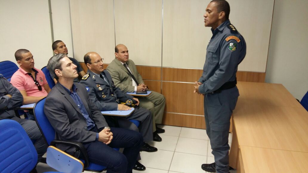 Na manhã da quarta feira (18), no auditório do SENAI, Distrito Industrial de Cuiabá, o Secretário de Segurança Pública, Rogers Jarbas, acompanhado do Secretário Adjunto de Integração Operacional, Cel PM Rhaygino Sarly Rodrigues Setúbal, do Comandante Geral da PMMT, Cel PM Gley Alves de Castro e do Diretor da Agência Central de Inteligência da PMMT, Cel PM Clarindo Alves de Castro, foram recebidos pelo Cel PM Jorge Luiz de Magalhães, Comandante do 1º Comando Regional (Cuiabá), juntamente com o Ten Cel PM Edvan Manoel de Azevedo, Comandante Regional Adjunto do 1º CR e Maj PM Fernando Augustinho de Oliveira Galindo, Comandante do 24º BPM, para reunião que apresentou os resultados alcançados nestes três meses do novo comando.