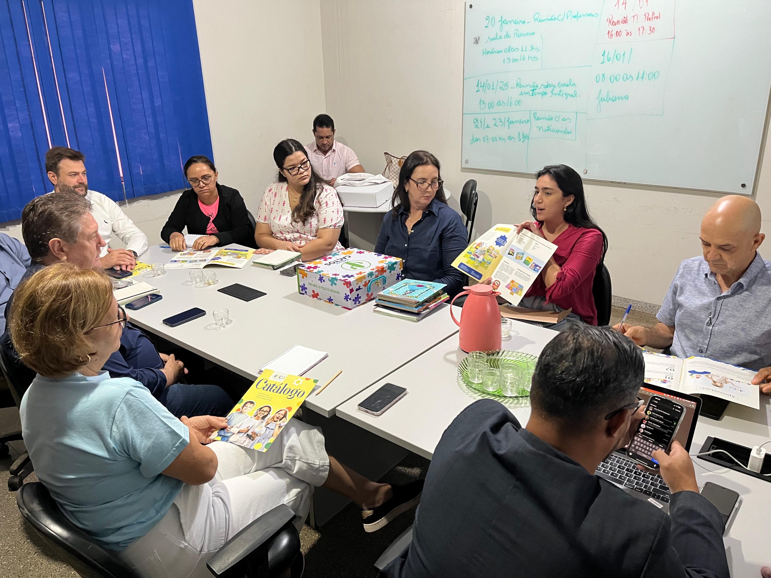 Durante a reunião, foram abordados temas cruciais para a educação municipal, incluindo a apresentação de materiais voltados à inclusão infantil, reforçando o compromisso da gestão com uma educação acessível e igualitária