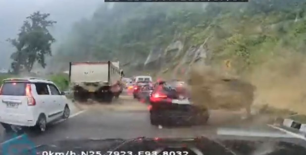 Um vídeo do momento foi gravado por uma pessoa que estava em um outro carro, atrás dos atingidos. O caso aconteceu nesta terça-feira (4), na rodovia nacional que liga Kohima e Dimapur, na região de Chumoukedima, no estado de Nagaland.