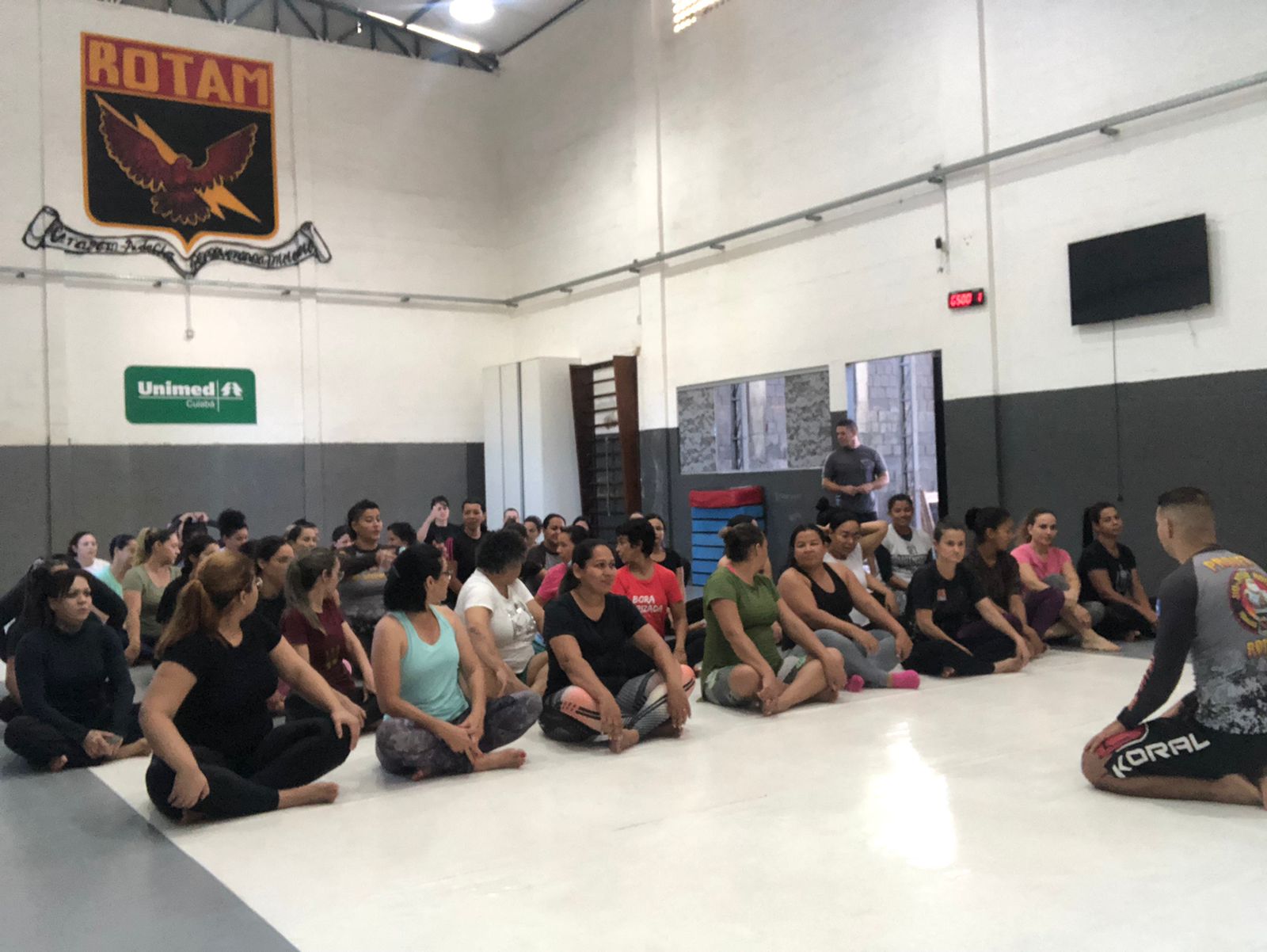 Ainda em comemoração ao Dia Internacional da Mulher, o Batalhão de Rondas Ostensivas Tático Móvel (Rotam) encerrou, na noite desta terça-feira (28.03), o I Curso de Defesa Pessoal para Mulheres – Ninguém Segura uma Mulher Segura. Ao todo, cinquenta mulheres participaram das oficinas, de forma gratuita, na sede da unidade, em Cuiabá.