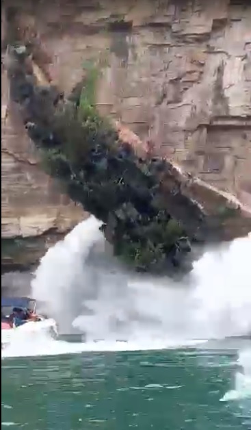 As operações haviam sido interrompidas às 19h de ontem (8) por falta de visibilidade. O desabamento ocorreu por volta das 12h30, quando um grande bloco de pedra se desprendeu do cânion do Lago de Furnas e caiu sobre pelo menos três lanchas. Duas embarcações afundaram.