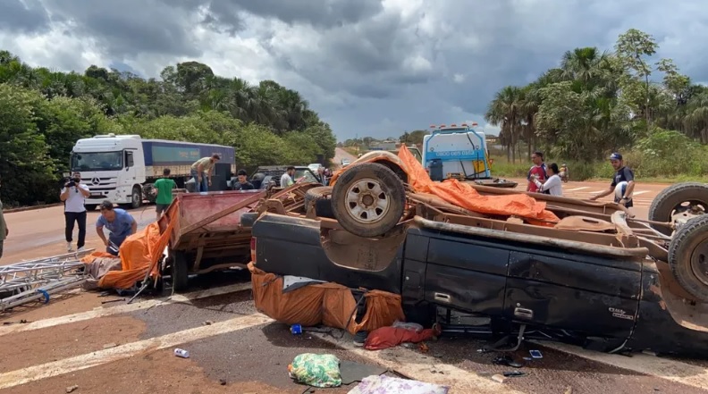As vítimas estavam em uma caminhonete, que bateu em uma carreta e capotou.