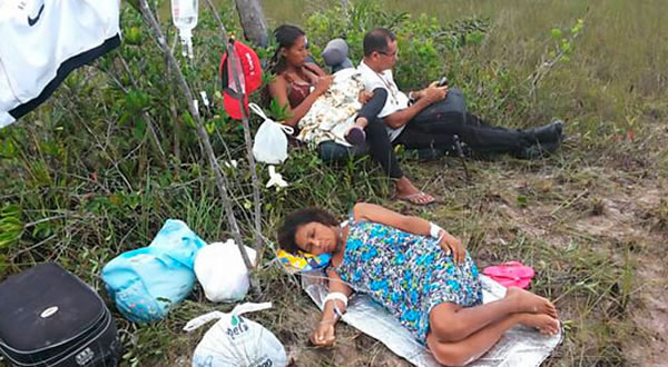 Marinez teve problemas no parto – a placenta ficou presa ao útero depois dela dar à luz e deu origem a uma hemorragia. Ela seria transferida. Françoisa da Silva, 24 anos, grávida de oito meses, também foi levada no avião para fazer exames na capital, levando no colo o bebê Rian, já que a mãe, Marinez, precisava seguir deitada na maca.