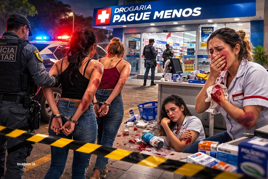 Na noite desta terça-feira(17), duas mulheres foram presas após protagonizarem cenas de violência dentro da unidade da Drogaria Pague Menos, na Avenida Juliano Costa Marques, em Cuiabá. O caso, registrado por volta das 18h40, terminou com funcionárias feridas e ameaçadas.