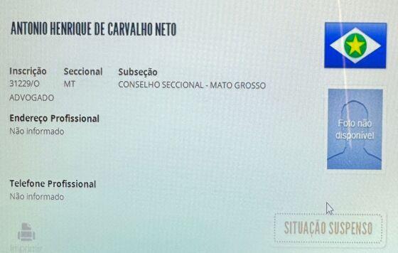 O advogado Antônio Henrique de Carvalho Neto foi preso na manhã desta terça-feira (13), em Cuiabá por suspeita de desviar cargas de óleo lubrificante, crimes contra a paz pública, crimes militares e associação criminosa.
