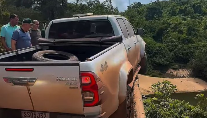 SUSTO NO NORTÃO DE MT: durante estradeiro caminhonete da comitiva do vice-governador quase cai de ponte