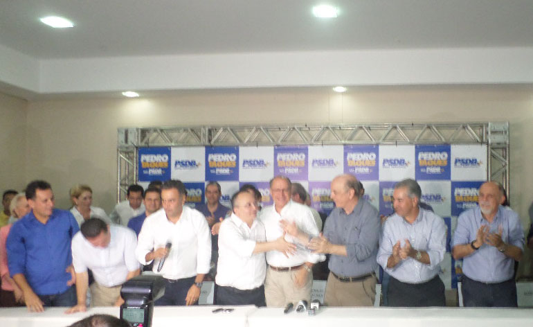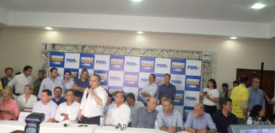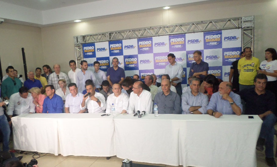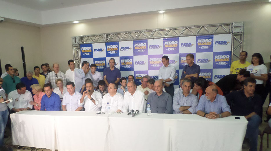 P    O ato de Filiação do Governador Pedro  Taques ao PSDB reuniu  milhares  de pessoas no Hotel Fazenda Mato Grosso, em Cuiabá, no sábado 29/08, com destaques para a presença de grandes lideranças  tucanas de nÃvel nacional como o presidente nacional do partido, Aécio Neves, e todos os governadores da sigla: Reinaldo Azambuja (MS), Marconi Perillo (GO), Simão Jatene (PA), Beto Rixa (PR), e Geraldo Alckmin (SP), ladeados do  senador José Serra e o deputado federal Nilson Leitão.