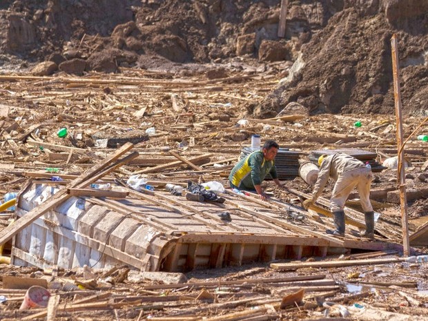 Chilenos fazem buscas em local destruído por enchente no dia 4 de abril (Foto: Patricio Miranda / AFP)