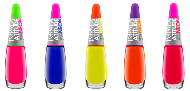 Por fim, no verão as cores vivas tipo neon sempre aparecem! A Impala lançou uma coleção dedicada a eles e arrasou. A Beauty Color também possui alguns esmaltes com cores neon. Para quem quer dar um efeito neon para as unhas com o esmalte da sua preferência, poderá usar o lançamento TopCoat da Studio35.