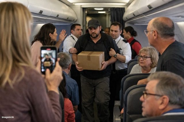 TENSÃO EM VOO: passageiros entram em pânico e forçam retirada de homem com caixa suspeita no avião