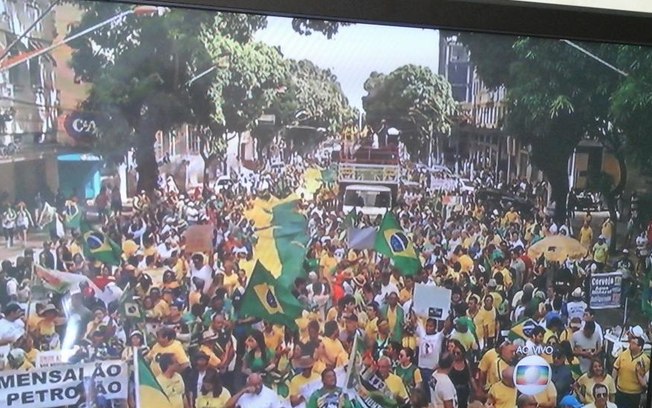 No Rio de Janeiro, manifestantes em cima de carros de som já se reúnem e iniciam os discursos contra Dilma, o PT e escândalos como a Operação Lava Jato.