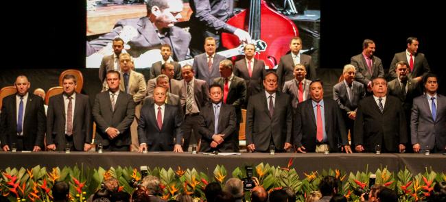 | Posse da nova Mesa Diretora da ALMTÂ (Foto: Fablicio Rodrigues/ALMT) |