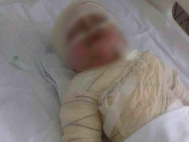 Ele contou que pegou o filho no colo e o abraçou, assim as chamas apagaram. A mãe da criança, que não ficou ferida, teria corrido cerca de 500 metros, com o filho mais novo do casal, para pedir que alguém os levasse para o hospital.
