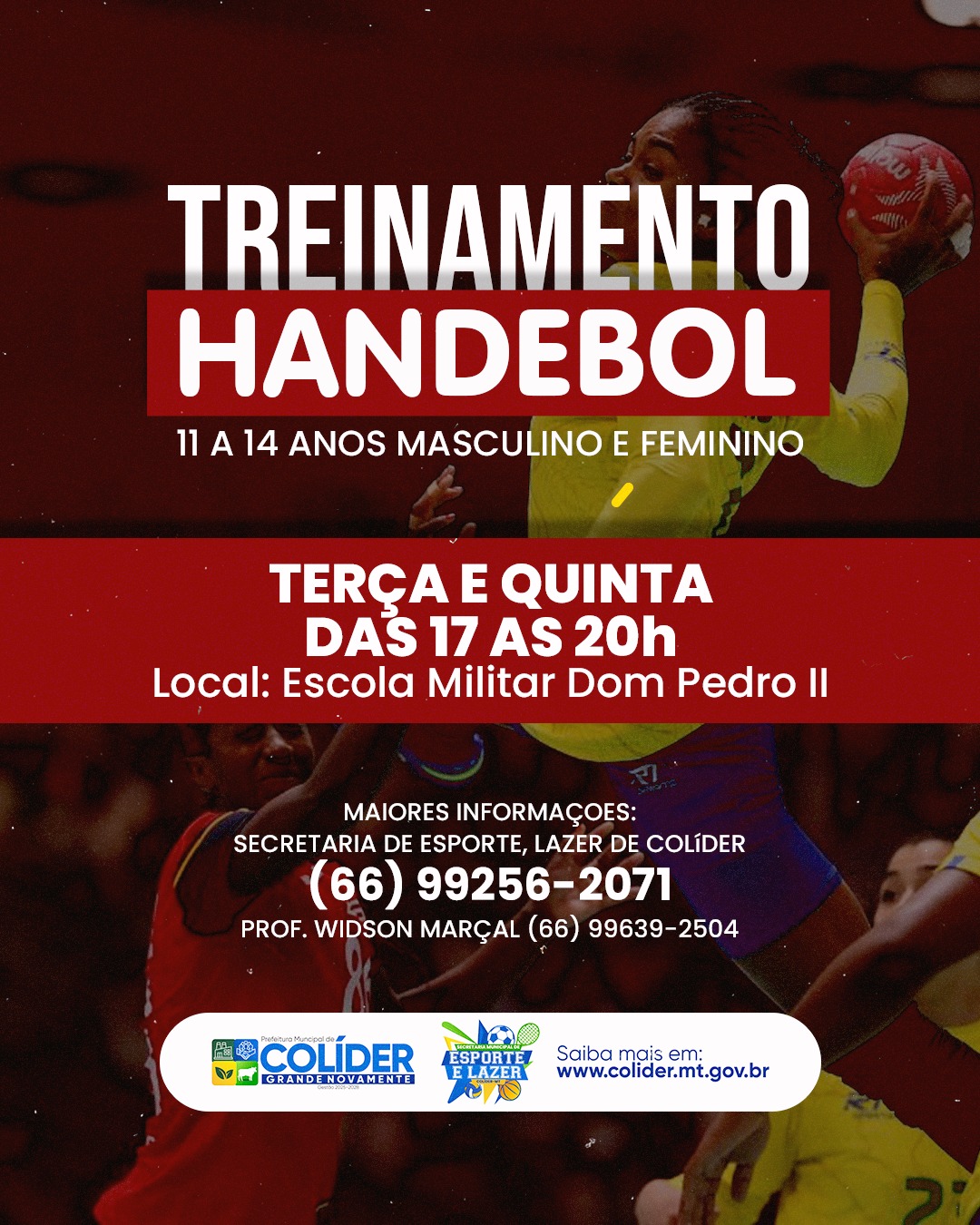 A Prefeitura Municipal de Colíder por meio da Secretaria Municipal de Esportes e Lazer está  ofertando a população, treinamento de  handebol.