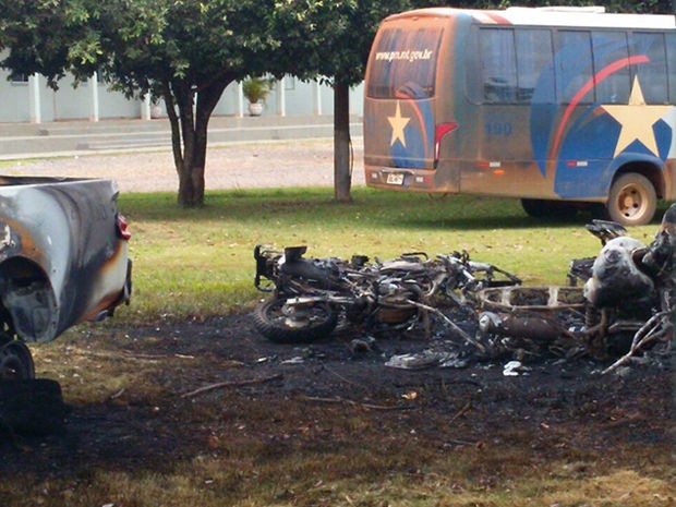 Criminosos ateiam fogo em 5 motos e caminhonete da PM em Mato Grosso (Foto: Divulgação/PM)