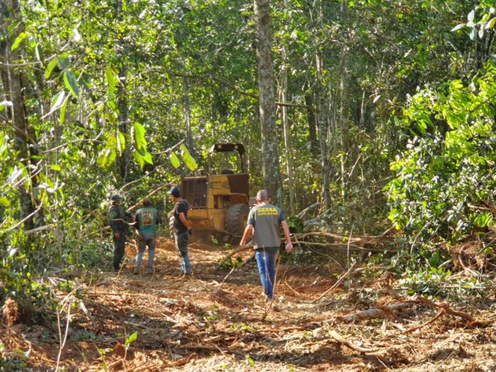Sema e PM apreendem três tratores e madeira extraída ilegalmente em Nova Maringá