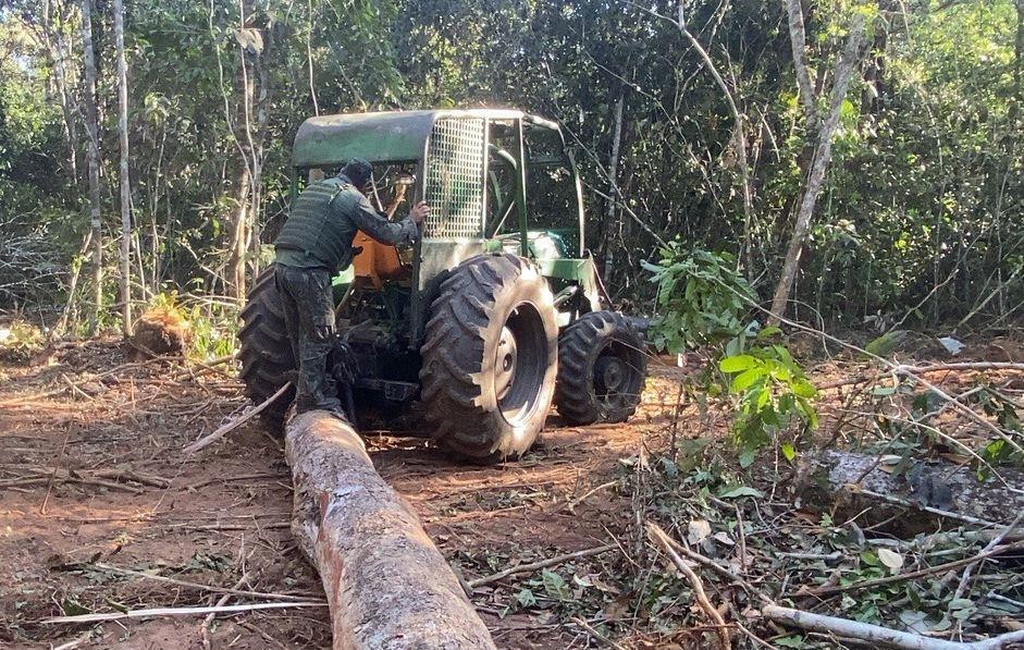 Início Policial Sema e PM apreendem três tratores e madeira extraída ilegalmente em Nova...