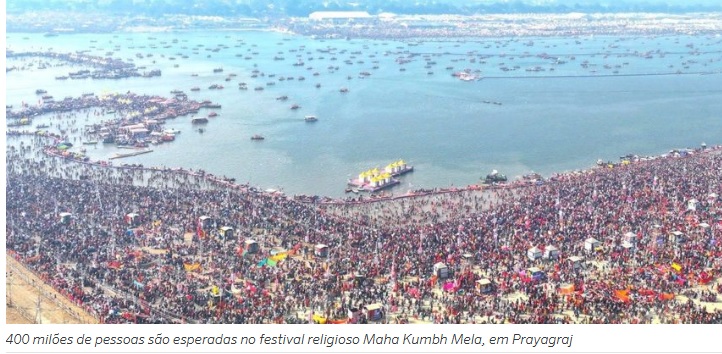 As autoridades estimam que 450 milhões de devotos chegarão ao longo das seis semanas, tornando-se a maior congregação humana do planeta, com 100 milhões deles somente nesta quarta-feira.