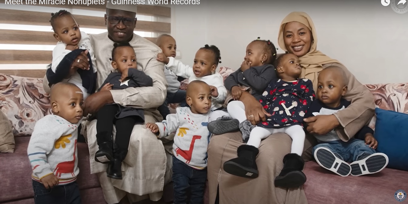 Halima Cisse e Adbelkader Arby são os pais dos nove irmãos. Os primeiros 19 meses de vida das crianças foram no Marrocos, mas agora eles estão de volta para Mali, residência da família.