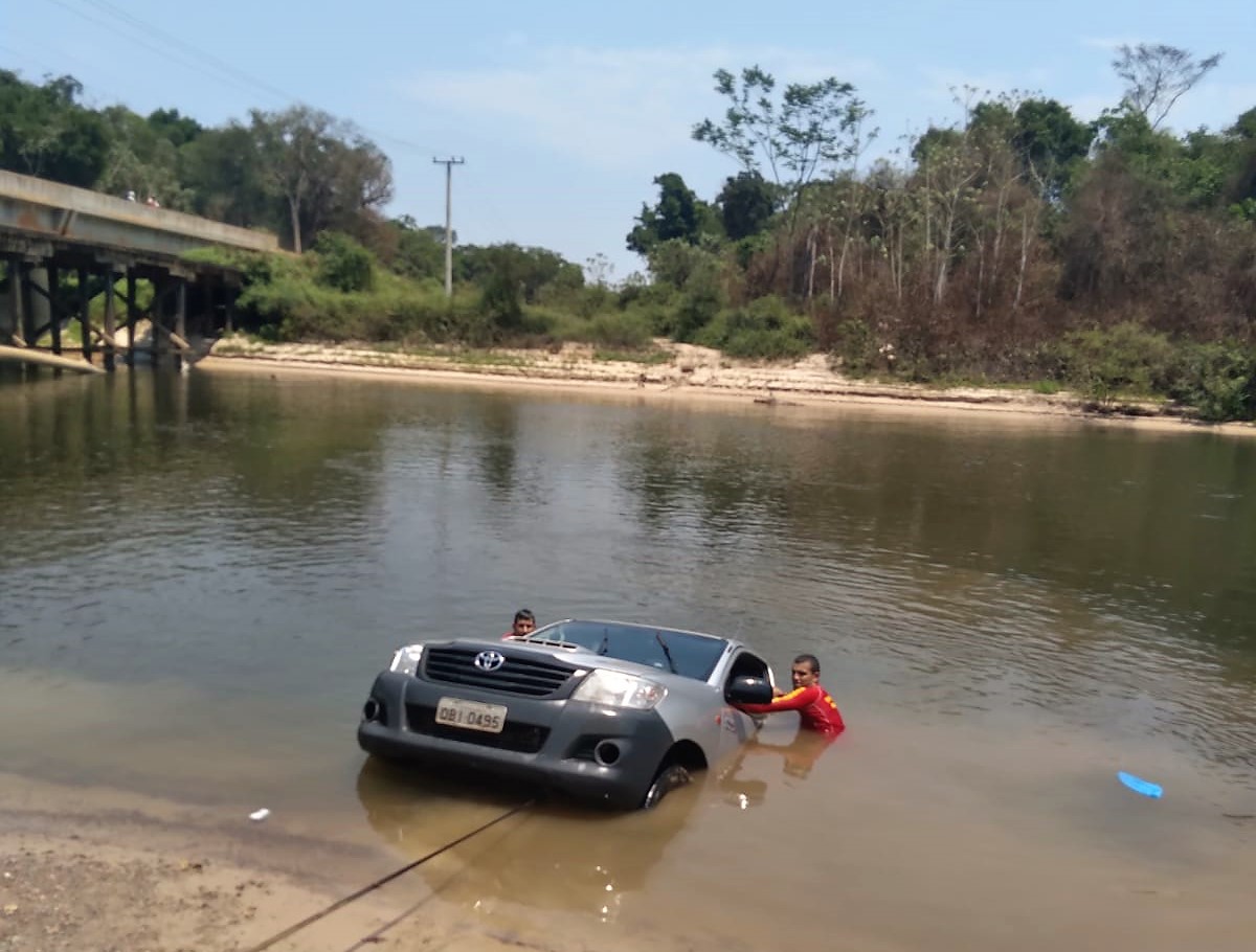 Bombeiros do Núcleo Bombeiro Militar (NBM) de Guarantã do Norte  fizeram a retirada de um veículo que adentrou em um rio acidentalmente, nesta quinta-feira (16/09). Não havia ninguém dentro do automóvel no momento.