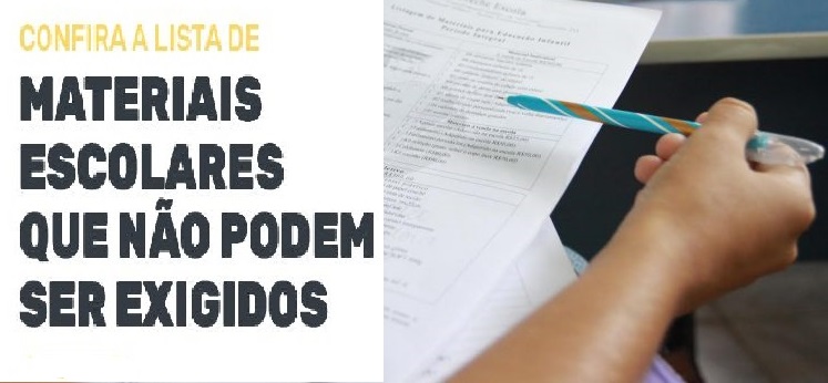 O Procon Estadual de Mato Grosso alerta pais e responsáveis que a legislação brasileira (Lei nº 12.886/2013) proíbe que os estabelecimentos de ensino incluam itens de uso coletivo na lista de material escolar. Entre os itens considerados de uso coletivo estão álcool, algodão, material de limpeza, copos, pratos e talheres descartáveis, canetas para lousa, fita, cartucho ou tonner para impressora.