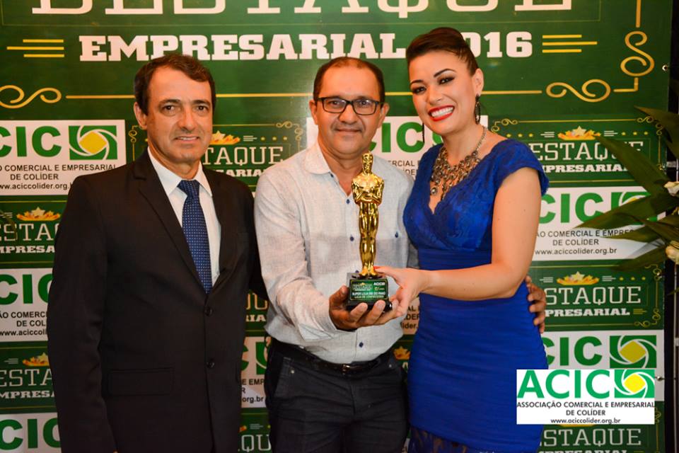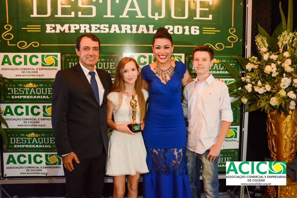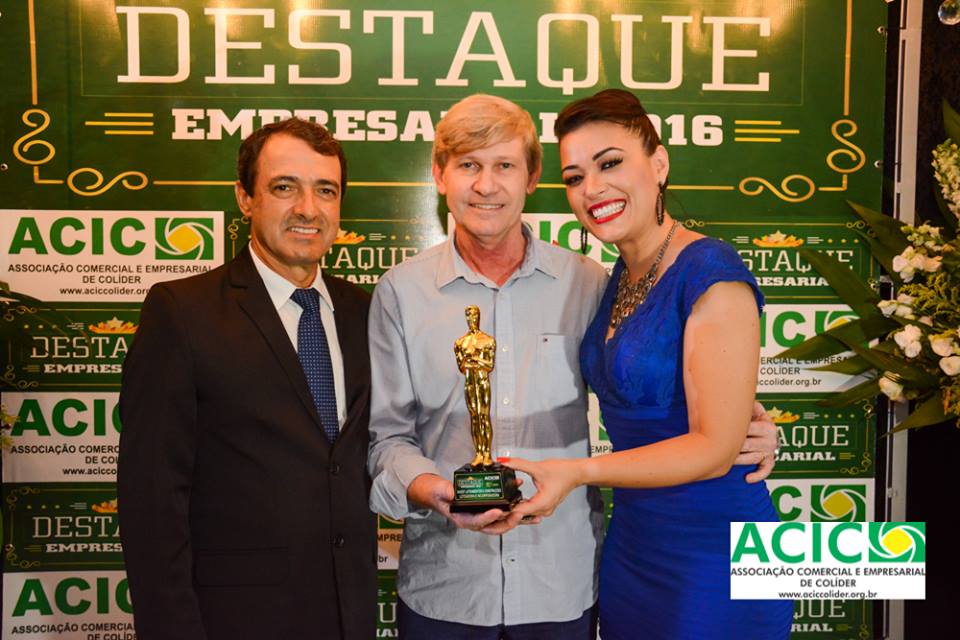 CONTEMPLADOS COM O TROFÉU DESTAQUE EMPRESARIAL  / 2016 – ACIC, premiação entregue dia 03 de dezembro 2016, nas dependências do CTG em Colider, onde empresários e profissionais liberais receberam o Troféu das mãos do Presidente da Acic, Inácio Carlos Batista e da comediante  Milene “Pavoro”.