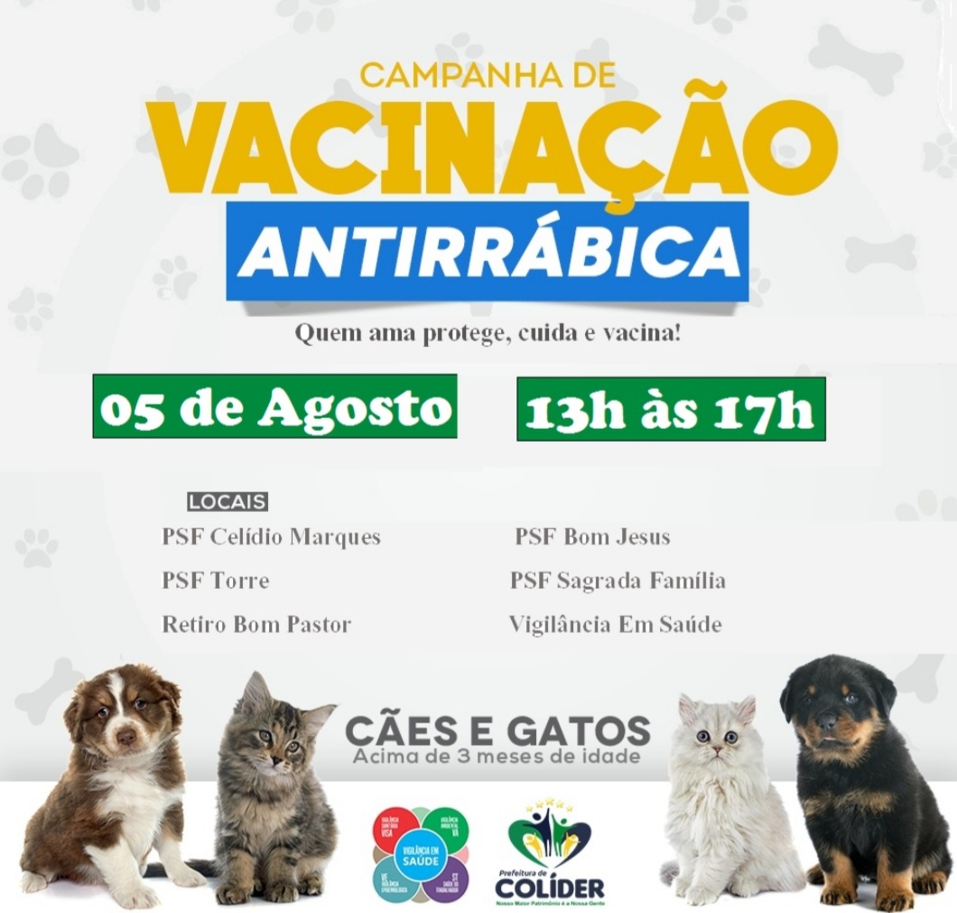 Início Colider Em Evidência Veja os pontos de vacinação para cães e gatos no próximo... Colider Em EvidênciaCOMUNIDADE EM PAUTA Veja os pontos de vacinação para cães e gatos no próximo sábado(05-08) em Colider Por Folha de Colíder - 2 de agosto de 2023 420 0 FacebookTwitterPinterestWhatsApp Da Assessoria