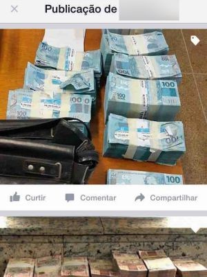 Imagens com maços de notas falsas foram