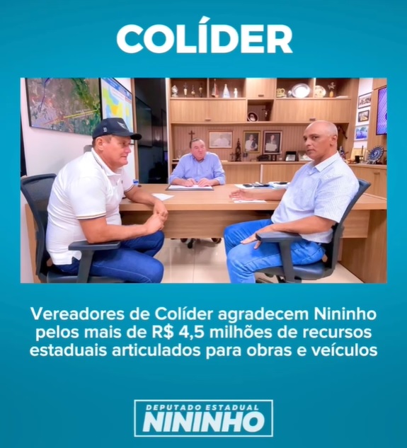 Início Colider Em Evidência Vereadores de Colider Agradecem Nininho Pelos Mais de R$ 4,5 Milhões Recursos... Colider Em EvidênciaCOMUNIDADE EM PAUTA Vereadores de Colider Agradecem Nininho Pelos Mais de R$ 4,5 Milhões Recursos Estaduais Articulados Para Obras e Veículos Por Folha de Colíder - 31 de agosto de 2023 426 0 FacebookTwitterPinterestWhatsApp