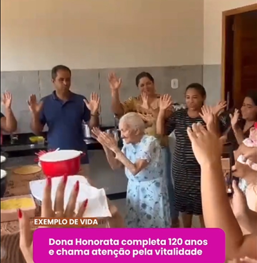 Mais do que a idade, o que chama atenção é a energia. Aos 120 anos, dona Honorata esbanja disposição e vira símbolo de alegria, resistência e amor pela vida.