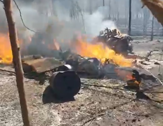 Vídeos registrados no local mostram a área de mata onde a aeronave caiu pegando fogo. As chamas se alastraram na área de plantação. A aeronave pegou fogo e ficou totalmente destruída.