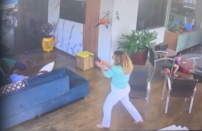 Imagens das câmeras de segurança mostram uma mulher de meia idade, loira, entrando armada e atirando contra as pessoas. Cerca de 10 indivíduos estavam na casa no momento do crime e havia crianças no local.