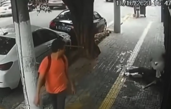 Um vídeo mostra um homem de 42 anos empurrando uma idosa de 86 anos na calçada do Jardim Paulista, Zona Oeste de São Paulo, na quarta-feira (18). A vítima sofreu uma fratura no fêmur e precisou levar pontos na cabeça.