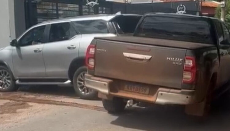 Um vídeo que circula nas redes sociais mostra o motorista de uma Toyota SW4 arrastando uma Toyota Hilux que estava trancando a garagem de um escritório de advocacia. O caso aconteceu na Rua Presidente Castelo Branco, no bairro Quilombo, em Cuiabá, nesta terça-feira (17).
