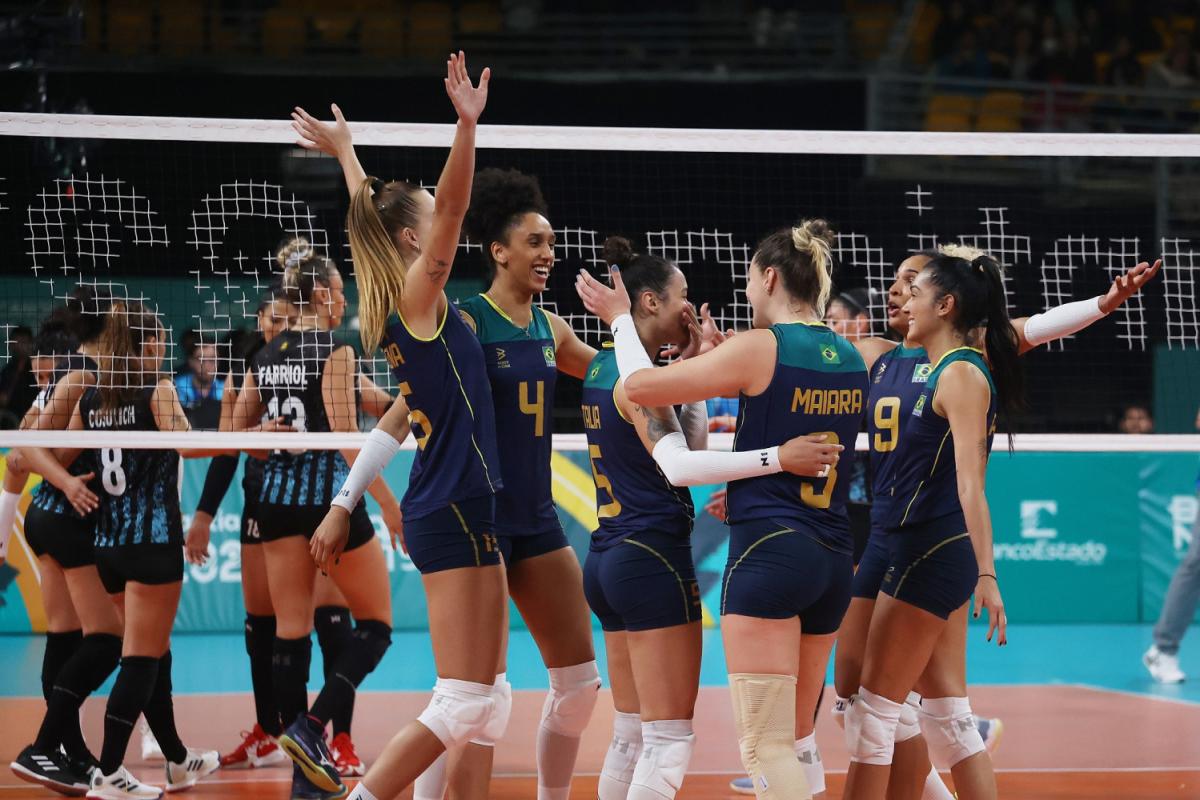 Na quadra, a seleção feminina derrotou a Argentina por 3 sets a 0 (parciais de 25/13, 25/20 e 25/18), na arena do Parque O’Higgins. A vitória garantiu a equipe na fase classificatória. Líder do grupo A, o Brasil agora vai enfrentar Porto Rico nesta segunda-feira, 23, e, em caso de nova vitória, avança diretamente para as semifinais do torneio.
