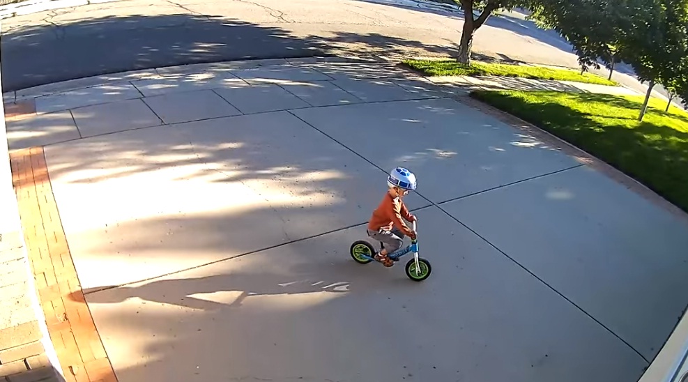 Ele ficou meio irritado no início, mas quando olhou nas imagens e descobriu que se tratava de uma criança, que gostava de andar de bike na entrada da garagem dele, o homem teve uma atitude linda.