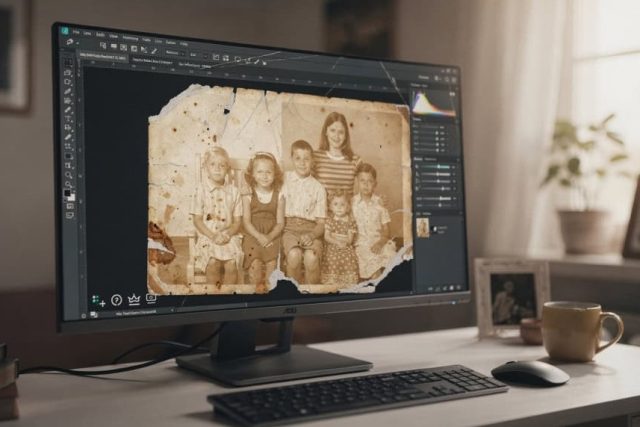 Tecnologia baseada em IA transforma fotos danificadas em imagens restauradas em segundos – (Imagem gerada por inteligência artificial-ChatGPT/Olhar Digital)